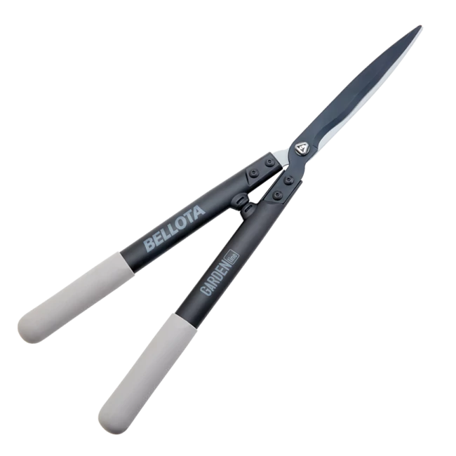 Hullámos élű sövénynyíró olló könnyű és ellenálló, ütközőkkel.
