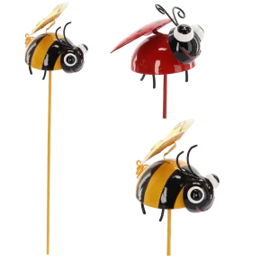 Leszúrható fém kerti dekor katica/méhecske 8x47cm