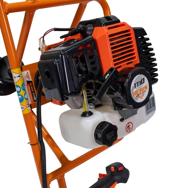 A RURIS TT10 motoros földfúrógép egy erős és könnyen használható eszköz, amelyet a TEZ 2 ütemű motorja hajt, 1,7 lóerő teljesítménnyel. A T-típusú hajtómű-építés pedig megkönnyíti a használatot és a manőverezhetőséget szűk helyeken is.