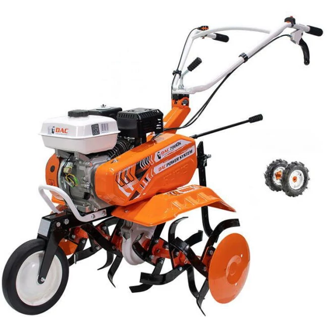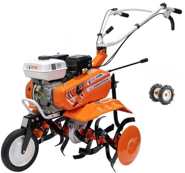 A DAC 7000K félprofesszionális motoros kapa a tartozékok széles skálájának felszerelését teszi lehetővé, mint pl.: egybarázdás eke, bordázó, burgonyavágó, kultivátor, hóvágó, dobos kaszarendszer, vetőgép, fém vagy gumi kerekek, pótkocsi, amely megtámasztja 500 kg-ig terjedő terhelés.